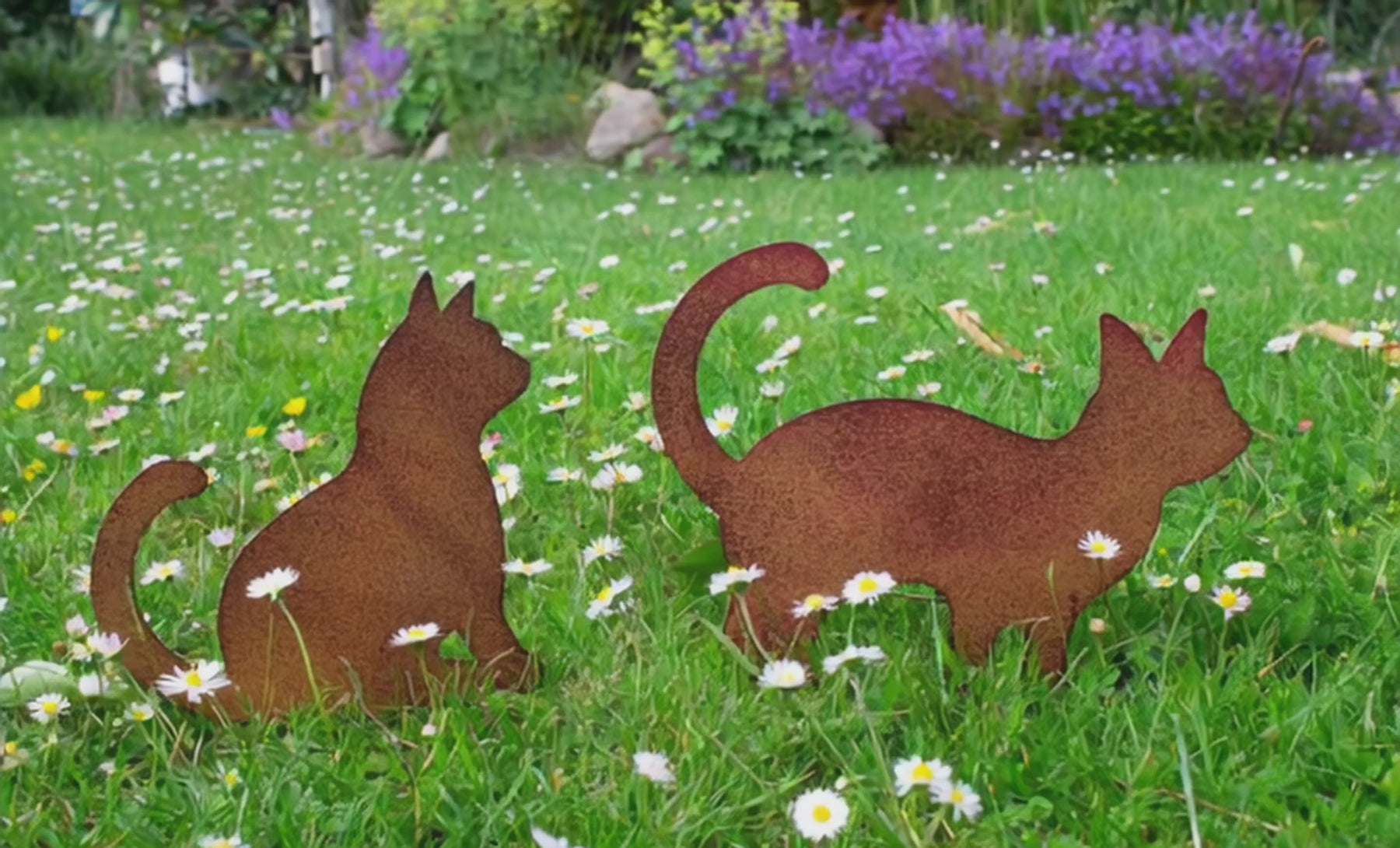 • KATZE IM GARTEN: Diese Metall Stecker bringen 2 kleine Katzen in Ihren Garten. Sie lassen Sich im Blumenbeet oder auf dem Rasen nieder. Einfach in die Erde oder ins Gras stecken.